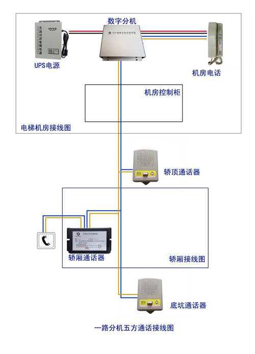 4、一棟樓只需要用一個(gè)分機(jī),分機(jī)多可帶四部電梯,主機(jī)可以分辨具體哪一部電梯